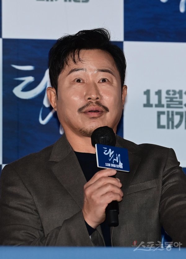 배우 이문식이 23일 서울 용산구 CGV용산아이파크몰점에서 열린 영화 ‘탄생‘ 언론시사회에서 인사말을 하고 있다.