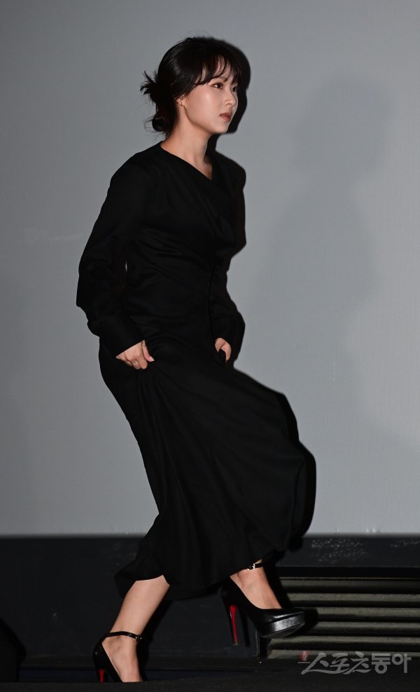 배우 송지연이 23일 서울 용산구 CGV용산아이파크몰점에서 열린 영화 ‘탄생‘ 언론시사회 무대에 입장하고 있다.