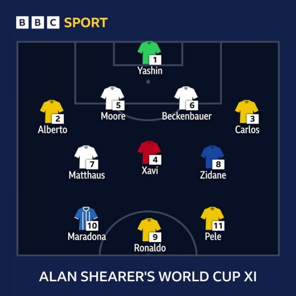 영국 BBC가 운영하는 팟캐스트 ‘매치 오브 더 데이 톱10’에 출연하는 잉글랜드 국가대표 출신 축구 전문가 앨런 시어러와 마이카 리차즈가 최근 방송에서 1930년 월드컵 출범 이래 90년 간 가장 뛰어난 활약을 펼친 ‘역대 베스트11’을 선정해 공개했다.