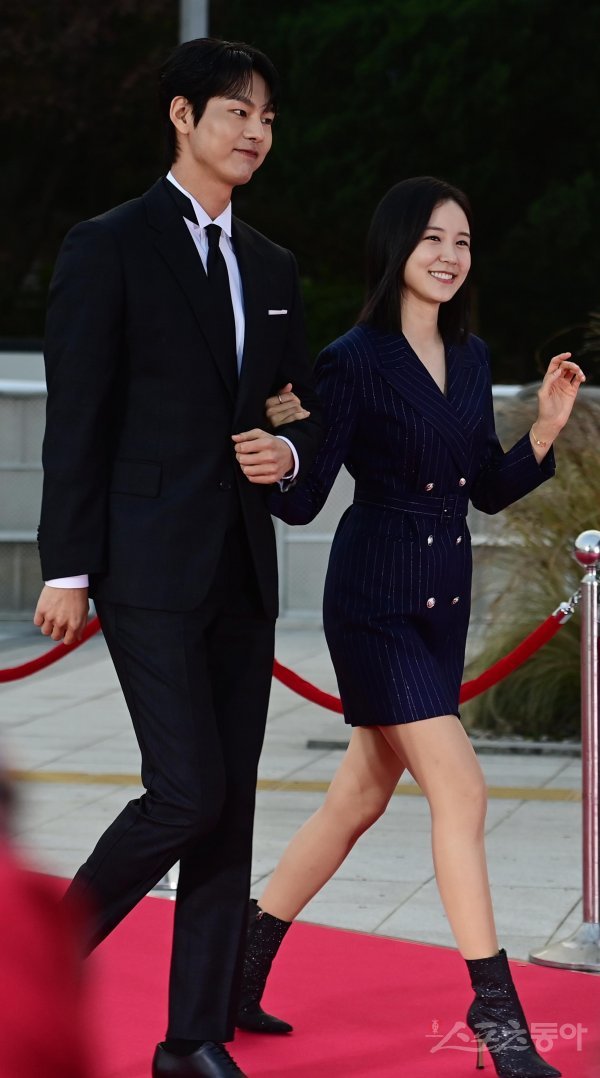 배우 박선호와 장예원이 24일 서울 중구 장충동 국립극장에서 열린 ‘2022 대한민국 대중문화예술상’ 시상식 레드카펫에 오르고 있다.