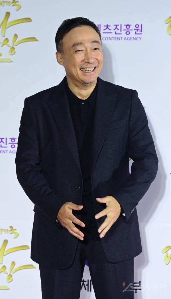 배우 이성민이 24일 서울 중구 장충동 국립극장에서 열린 ‘2022 대한민국 대중문화예술상’ 시상식 레드카펫에서 포즈를 취하고 있다.