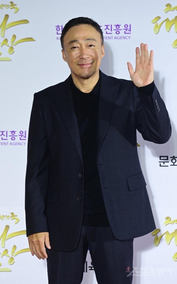배우 이성민이 24일 서울 중구 장충동 국립극장에서 열린 ‘2022 대한민국 대중문화예술상’ 시상식 레드카펫에서 포즈를 취하고 있다.