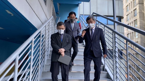 한국마사회 영등포지사에서 비상대피동선을 점검중인 한국마사회 정기환 회장(오른쪽).사진제공|한국마사회