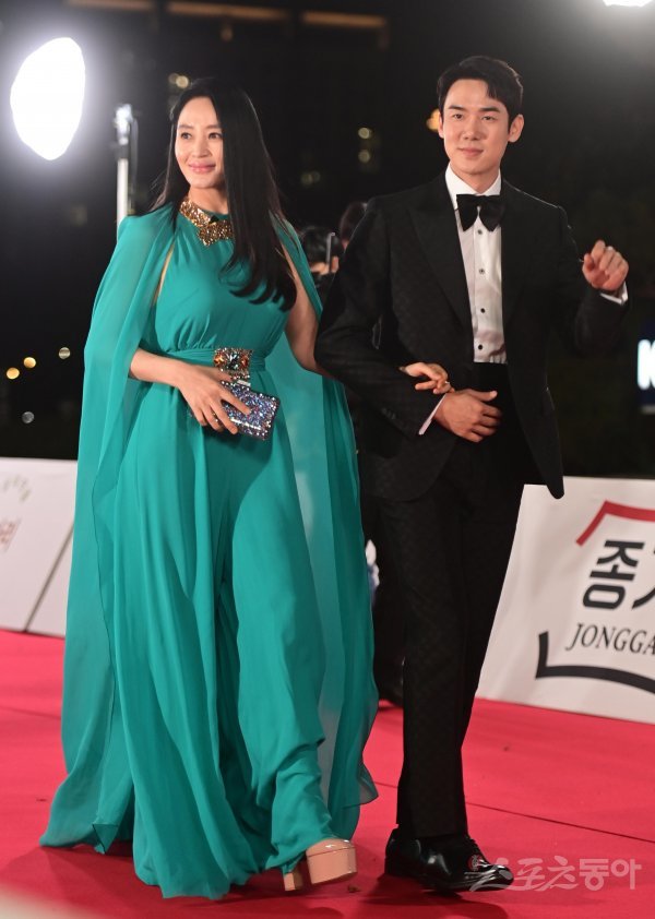배우 김혜수와 유연석이 25일 서울 영등포구 여의도동 KBS홀에서 열린 ‘제43회 청룡영화상’ 레드카펫을 통해 입장하고 있다.