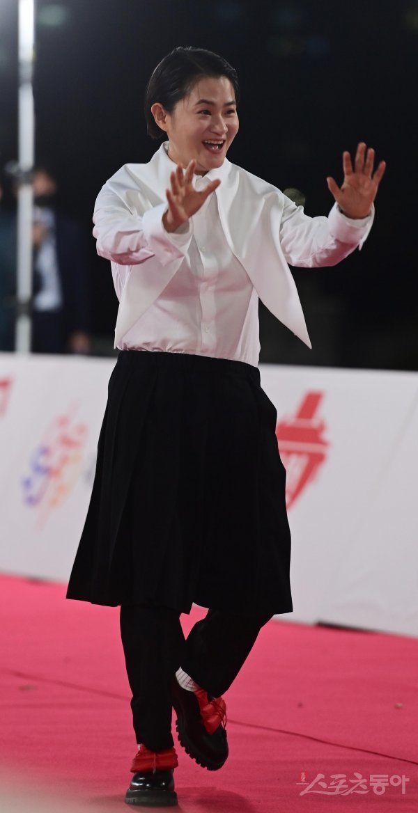 코미디언 김신영이 25일 서울 영등포구 여의도동 KBS홀에서 열린 ‘제43회 청룡영화상’ 레드카펫을 통해 입장하고 있다.