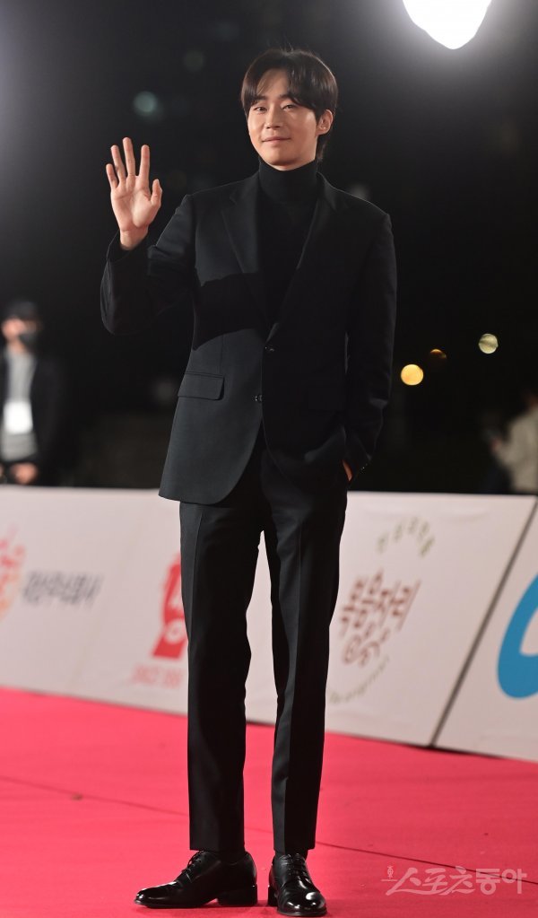 배우 무진성이 25일 서울 영등포구 여의도동 KBS홀에서 열린 ‘제43회 청룡영화상’ 레드카펫에서 포즈를 하고 있다.