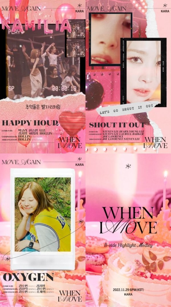 이제 카라는 오는 27~28일 타이틀곡 'WHEN I MOVE'의 뮤직비디오 티저 2편을 차례로 공개한 뒤, 29일 오후 6시 각종 온라인 음원 사이트를 통해 스페셜 앨범 'MOVE AGAIN'을 발매한다.