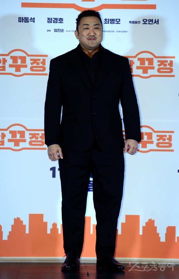 배우 마동석이 28일 오후 서울 롯데시네마 건대입구점에서 열린 영화 ‘압꾸정’ 언론시사회에 참석해 카메라를 향해 포즈를 취하고 있다.