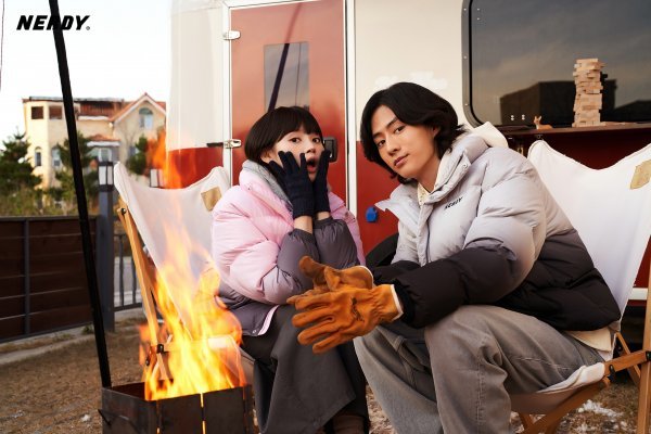 ‘겨울 캠핑’을 테마로 눈이 내려앉은 자연과 함께 여가를 즐기는 커플의 모습을 담았다. 붉게 타오르는 모닥불 앞에 앉아 휴식을 취하며 따뜻한 커피 한 잔을 즐기는 연출로, 추운 겨울 시즌에도 널디의 윈터룩과 함께 외부 활동을 즐기는 것을 강조했다.