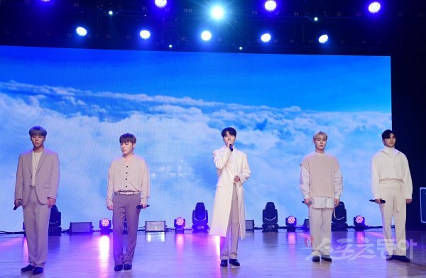그룹 위앤유가 30일 서울 강남구 청담동 일지아트홀에서 열린 첫 번째 싱글앨범 ‘하루하루’ 발매 기념 프레스 쇼케이스에서 동명의 타이틀곡 무대를 펼치고 있다.