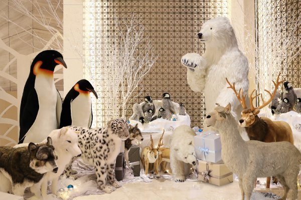 우선 7m 높이의 초대형 크리스마스트리는 제주신화월드 신화테라스 야외공간에 설치했다. LED로 제작한 겨울 동물들과 함께 동화 속 겨울 숲속의 테마 공간을 재현했다. 호텔 로비 와 신화테마파크 등에는 동물 조형물로 포토존 ‘애니멀 윈터 피크닉’은 조성했다.
