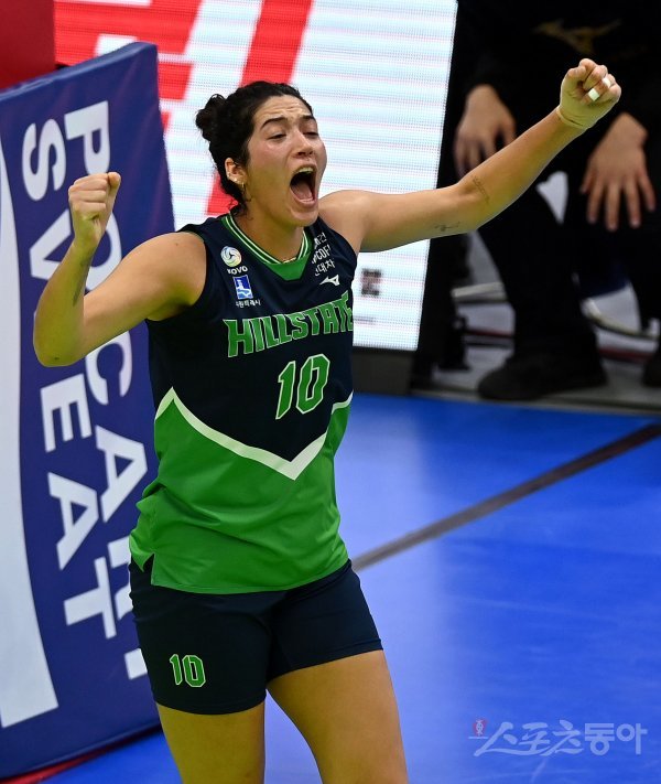 30일 경기도 수원체육관에서 ‘2022-2023 도드람 V리그’ 수원 현대건설과 대전 KGC인삼공사의 여자부 경기가 열렸다. 현대건설 야스민이 득점을 올린 후 환호하고 있다.