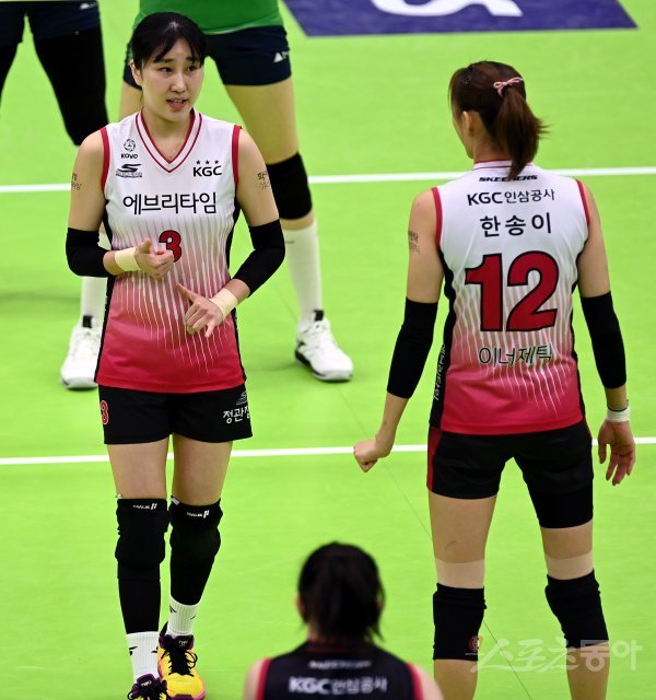 30일 경기도 수원체육관에서 ‘2022-2023 도드람 V리그’ 수원 현대건설과 대전 KGC인삼공사의 여자부 경기가 열렸다. KGC인삼공사 염혜선이 작전을 지시하고 있다.