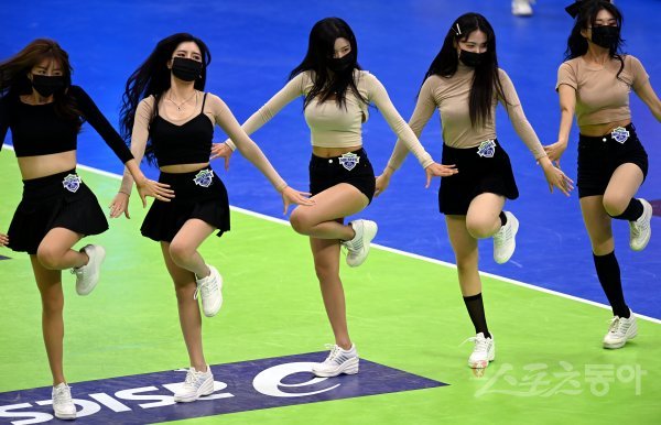 30일 경기도 수원체육관에서 ‘2022-2023 도드람 V리그’ 수원 현대건설과 대전 KGC인삼공사의 여자부 경기가 열렸다. 현대건설 치어리더가 화려한 공연을 펼치고 있다.