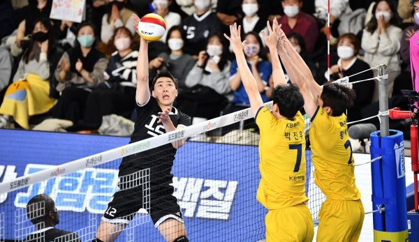 현대캐피탈은 1일 천안 유관순체육관에서 열린 ‘도드람 2022~2023 V리그’ 남자부 2라운드 KB손해보험과 홈경기에서 세트스코어 3-1(25-20 25-15 25-27 26-24)로 이겼다. 3연승을 달린 현대캐피탈은 7승4패(승점 21)로 2위 자리를 굳건히 했다. 전광인(17점·공격성공률 80%)을 비롯해 오레올(19점·55.56%), 허수봉(18점·48.15%), 최민호(10점·42.86%)가 두루 활약했다. 블로킹 선두를 다투는 팀답게 팀 블로킹도 14개나 기록했다. 반면 6연패에 빠진 KB손해보험은 3승7패(승점 9)로 6위에 머물렀다.