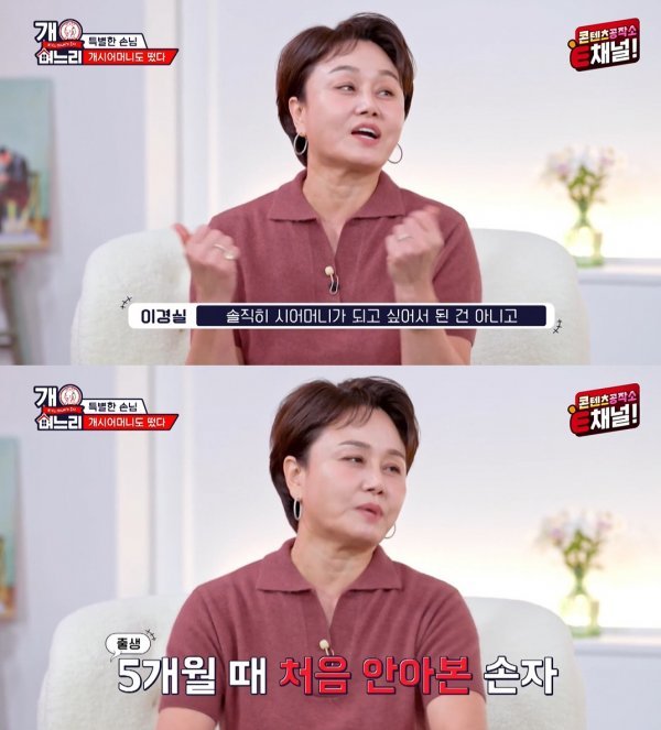 지난 1일 방송된 티캐스트 E채널 예능 프로그램 ‘개며느리’(연출 박소현, 작가 안용진) 3회에서는 남다른 아우라를 뿜내는 ‘개시어머니’ 이경실이 특별 게스트로 함께 했다.