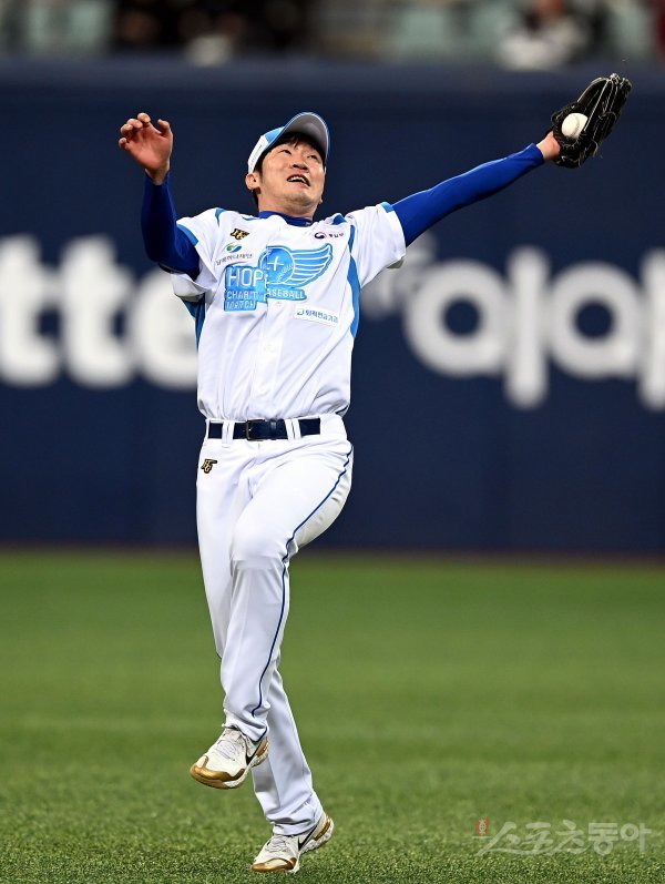 3일 서울 고척스카이돔에서 ‘2022 희망더하기 자선야구대회’가 열렸다. 양신 팀 박종훈이 수비를 펼치고 있다.