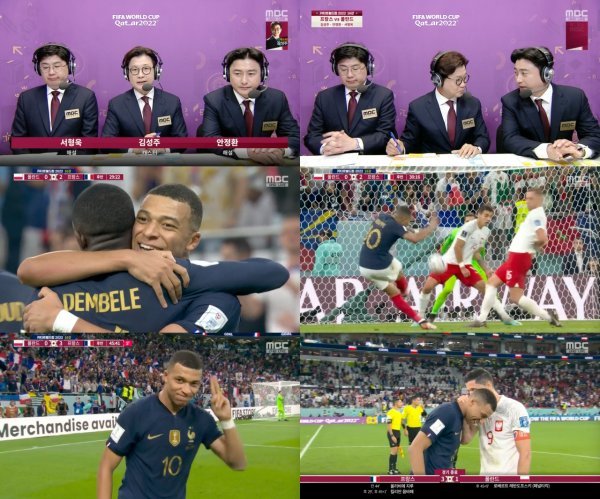2022 카타르월드컵 16강전에서 프랑스가 폴란드를 상대로 3-1 승리를 거둬 8강 진출에 성공했다. 이날 경기를 생중계한 MBC에서는 김성주 캐스터와 안정환, 서형욱 해설위원이 중계를 맡았다.