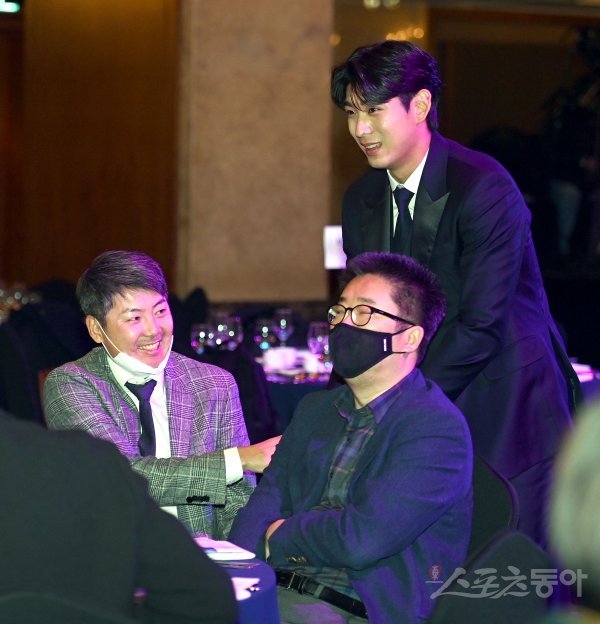 스포츠동아가 동아일보, 채널A, 메디힐과 공동으로 주최하고 국내 5대 프로스포츠(프로야구·프로축구·남녀프로농구·남녀프로배구·남녀프로골프) 종목별로 올 한해를 빛낸 최고의 선수를 선정하는‘메디힐과 함께하는 2022 동아스포츠대상‘ 시상식이 5일 서울 중구 롯데호텔서울 크리스탈볼룸에서 개최됐다. 키움 이정후가 SSG 김원형 감독에게 인사하고 있다