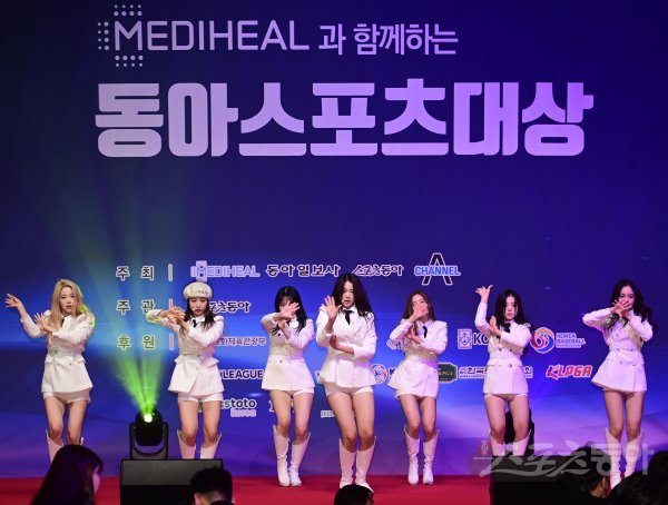 스포츠동아가 동아일보, 채널A, 메디힐과 공동으로 주최하고 국내 5대 프로스포츠(프로야구·프로축구·남녀프로농구·남녀프로배구·남녀프로골프) 종목별로 올 한해를 빛낸 최고의 선수를 선정하는‘메디힐과 함께하는 2022 동아스포츠대상‘ 시상식이 5일 서울 중구 롯데호텔서울 크리스탈볼룸에서 개최됐다. 걸그룹 클라씨가 축하 공연을 하고 있다. 주현희 기자 teth1147@donga.com