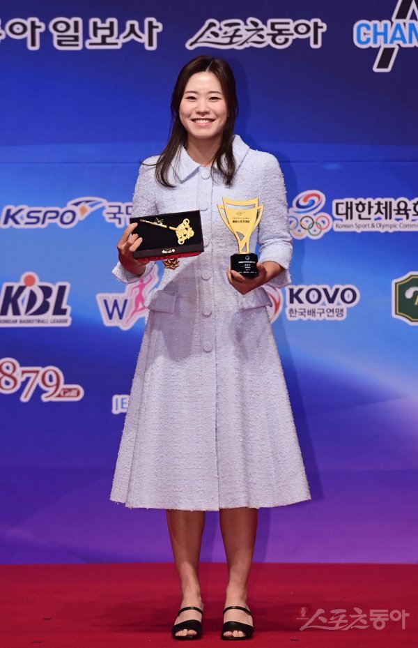 스포츠동아가 동아일보, 채널A, 메디힐과 공동으로 주최하고 국내 5대 프로스포츠(프로야구·프로축구·남녀프로농구·남녀프로배구·남녀프로골프) 종목별로 올 한해를 빛낸 최고의 선수를 선정하는 ‘메디힐과 함께하는 2022 동아스포츠대상‘ 시상식이 5일 서울 중구 롯데호텔서울 크리스탈볼룸에서 개최됐다. 여자프로골프 올해의 선수상을 수상한 박민지(NH투자증권)가 기념촬영을 하고 있다.