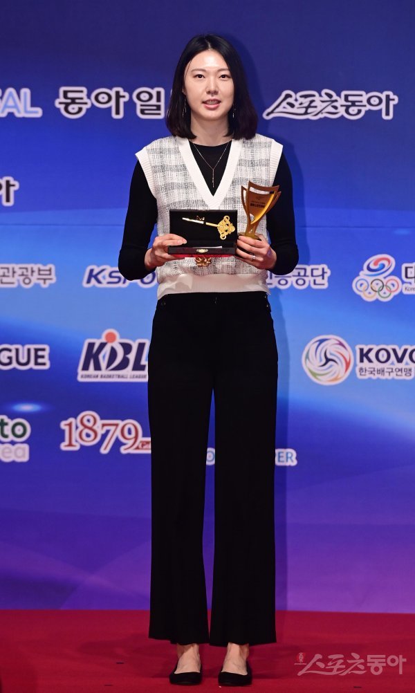 스포츠동아가 동아일보, 채널A, 메디힐과 공동으로 주최하고 국내 5대 프로스포츠(프로야구·프로축구·남녀프로농구·남녀프로배구·남녀프로골프) 종목별로 올 한해를 빛낸 최고의 선수를 선정하는 ‘메디힐과 함께하는 2022 동아스포츠대상‘ 시상식이 5일 서울 중구 롯데호텔서울 크리스탈볼룸에서 개최됐다. 여자프로배구 올해의 선수상을 수상한 양효진(현대건설)이 기념촬영을 하고 있다.