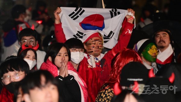 6일 서울 광화문광장에서 열린 ‘2022 카타르 월드컵’ 한국과 브라질의 16강전 경기 승리를 기원하는 시민들이 1-4 패배에 아쉬워하고 있다.