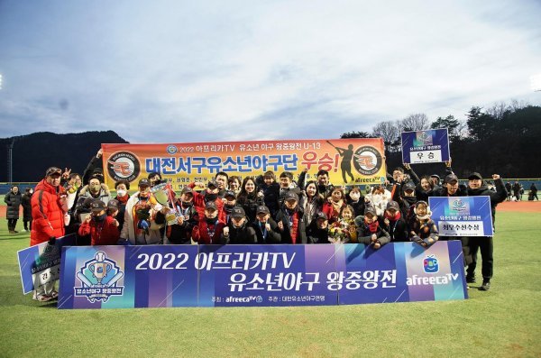 한화 이글스 출신 연경흠 감독이 이끄는 대전서구유소년야구단이 올해 유소년야구의 최강자로 우뚝 섰다. 4일 막을 내린 ‘2022 아프리카TV 유소년야구 최강전’에서 경기 안양시유소년야구단을 따돌리고 유소년야구 챔피언으로 등극했다.아프리카TV가 주최하고 대한유소년야구연맹(회장 이상근)이 주관한 이번 대회는 12월 3~4일 강원도 횡성군 베이스볼테마파크 4개 구장에서 올해 성적을 기준으로 리그별 8강이 참가한 가운데 펼쳐졌다. 재단법인 양준혁야구재단이 특별 후원하고 스톰베이스볼, 핀스포츠, 와니엘(WANIEL), 도미니온(DOMINION)이 후원한 가운데 성황리에 마무리됐다.