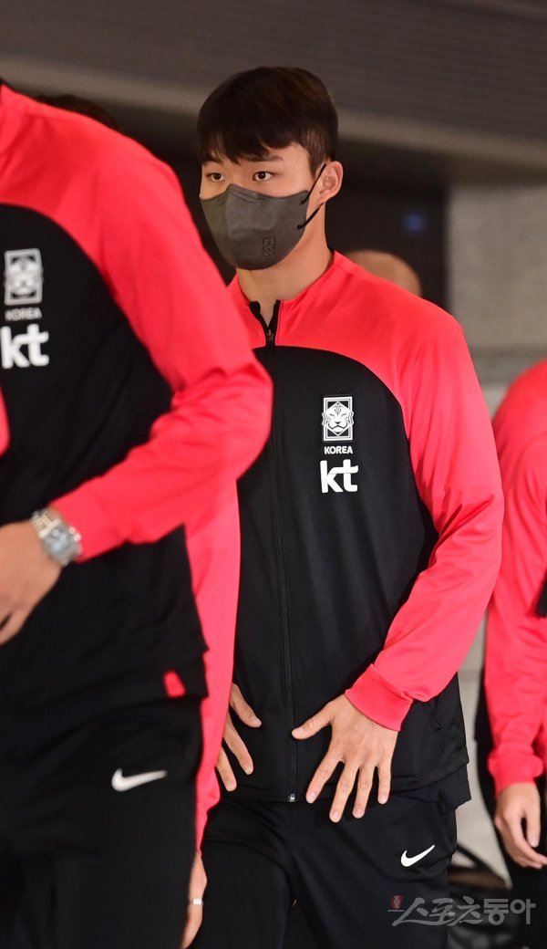 ‘2022 카타르 월드컵’ 16강을 거둔 한국축구대표팀이 7일 인천국제공항 1터미널을 통해 귀국해 축하행사를 하고 있다. 한국 오현규가 입국하고 있다.