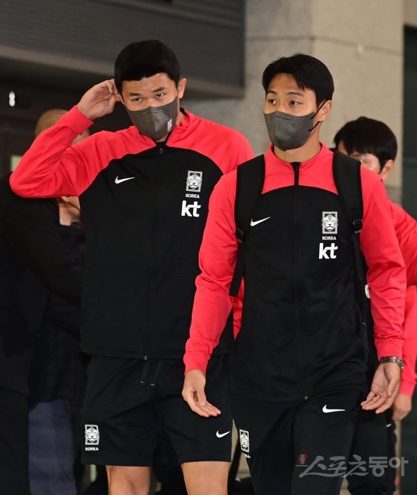 ‘2022 카타르 월드컵’ 16강을 거둔 한국축구대표팀이 7일 인천국제공항 1터미널을 통해 귀국해 축하행사를 하고 있다. 한국 김민재와 백승호가 입국하고 있다.