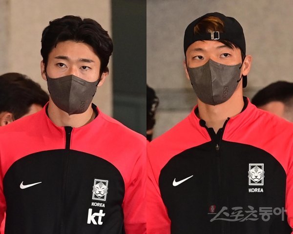 조규성(왼쪽), 황희찬. 인천국제공항 | 주현희 기자 teth1147@donga.com