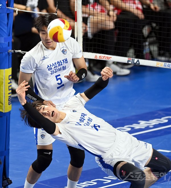 7일 천안 유관순체육관에서 열린 ‘2022~2023 도드람 V-리그’ 남자부 현대캐피탈과 삼성화재 경기에서 삼성화재 양희준이 디그에 실패하고 있다.