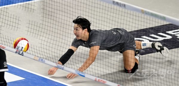 7일 천안 유관순체육관에서 열린 ‘2022~2023 도드람 V-리그’ 남자부 현대캐피탈과 삼성화재 경기에서 삼성화재 이상욱이 리시브에 실패하고 있다.