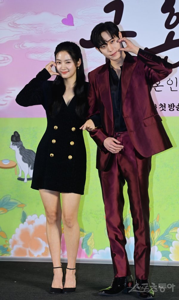 배우 박주현, 김영대가 8일 서울 용산구 CGV용산아이파크몰점에서 열린 MBC 새 금토드라마 ‘금혼령, 조선 혼인 금지령’ 제작발표회에서 포즈를 취하고 있다.
