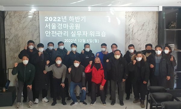 한국마사회는 5일 ‘2022년 경마 유관단체 안전관리자 워크숍(사진)’을 개최했다. 마사시설, 말조교, 응급구호, 주로관리, 출발 등 경마현장을 담당하는 한국마사회 직원 및 경마유관단체인 서울경마장조교사협회 소속 안전관리 담당자 등 20여 명이 참석했다. 참석자들은 마사지역 안전시설 확대와 유지 및 보수의 중요성, 조교 중 응급상황 신속 대처를 위한 매뉴얼 검토 등 실무적인 논의를 진행했다. 경마시행체인 한국마사회는 경마현장 종사자들과 꾸준한 소통으로 안전문화 확산을 위해 노력하고 있다.