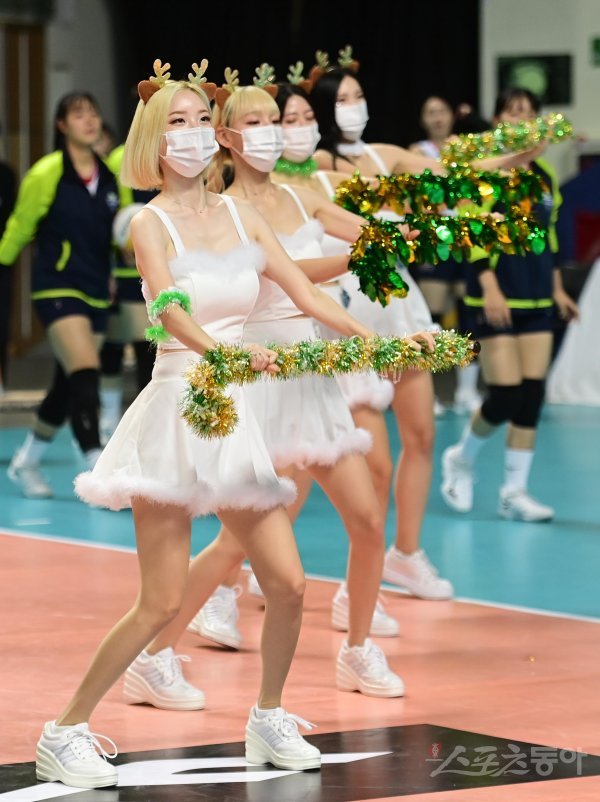 8일 서울 장충체육관에서 열린 ‘2022-2023 도드람 V-리그’ 여자부 서울 GS칼텍스와 수원 현대건설의 경기에서 GS칼텍스 서현숙 치어리더가 공연을 펼치고 있다.