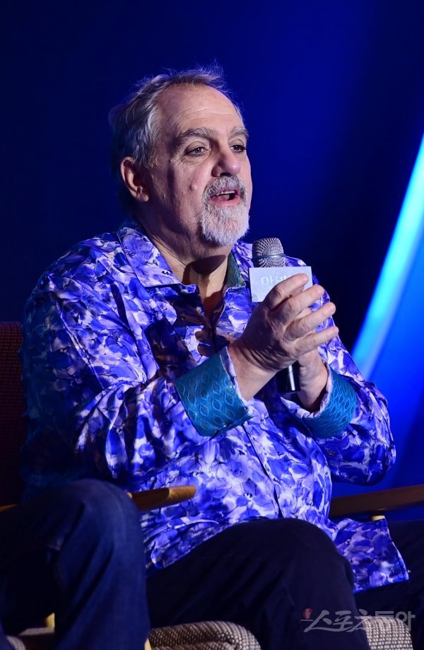 존 랜도 프로듀서가 9일 서울 영등포구 여의도 콘래드서울에서 열린 영화 ‘아바타: 물의 길’ 내한 기자간담회에서 인사말을 하고 있다.