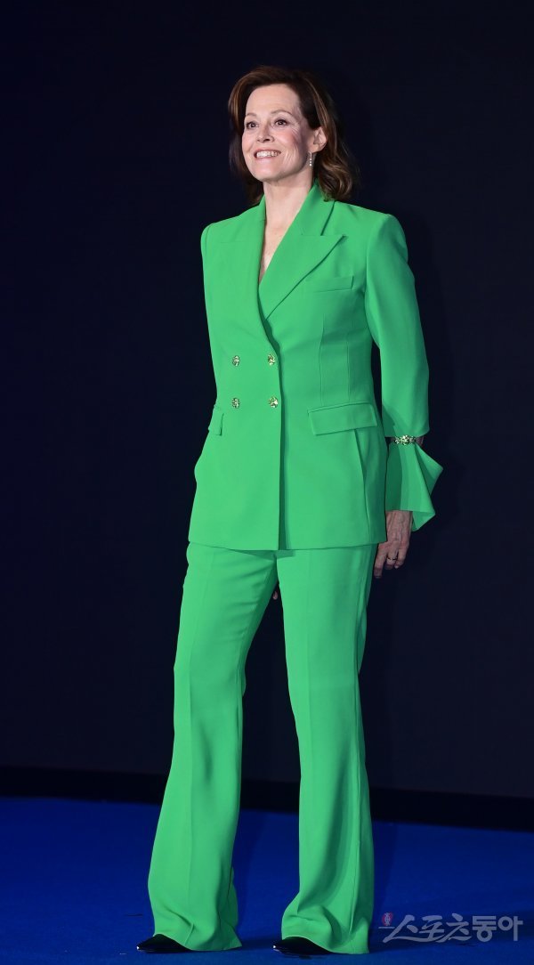 배우 시고니 위버가 9일 서울 영등포구 여의도 콘래드서울에서 열린 영화 ‘아바타: 물의 길’ 내한 기자간담회에서 포즈를 취하고 있다.