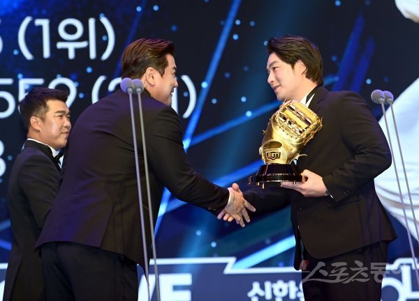 ‘2022 신한은행 SOL KBO리그’ 골든글러브 시상식이 9일 서울 코엑스 오디토리움에서 개최됐다. KT 박병호가 1루수 부문 골든글러브를 수상하고 있다.