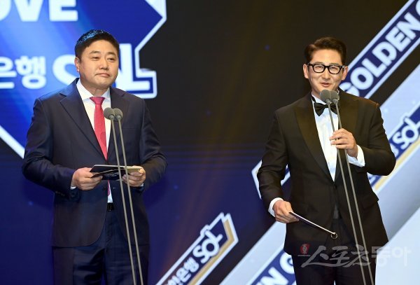 ‘2022 신한은행 SOL KBO리그’ 골든글러브 시상식이 9일 서울 코엑스 오디토리움에서 개최됐다. 양준혁과 박용택이 수상자를 발표하고 있다.