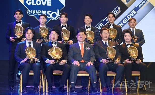‘2022 신한은행 SOL KBO리그’ 골든글러브 시상식이 9일 서울 코엑스 오디토리움에서 개최됐다. 각 부문 수상자들이 기념촬영을 하고 있다.