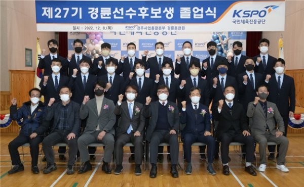 국민체육진흥공단(이사장 조현재) 경주사업총괄본부는 8일 경북 영주 경륜훈련원에서 제27기 경륜선수 후보생 졸업식을 진행했다.2월 입소한 후보생들은 약 11개월간 경륜훈련원에서 자전거 주행 및 정비기술, 전법, 체력훈련, 공정·선수인권·스포츠안전 교육, 안전 주행을 위한 사고 대비 훈련 등을 이수했다.