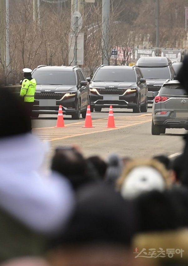 방탄소년단 진이 13일 경기 연천 5보병사단 신병교육대대에 군입대를 했다. 방탄소년단 진을 포함한 멤버들을 태운 차량이 부대로 들어서고 있다.