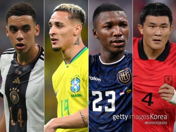 자말 무시알라, 안토니, 모이세스 카이세도, 김민재(왼쪽부터). 사진=게티이미지코리아