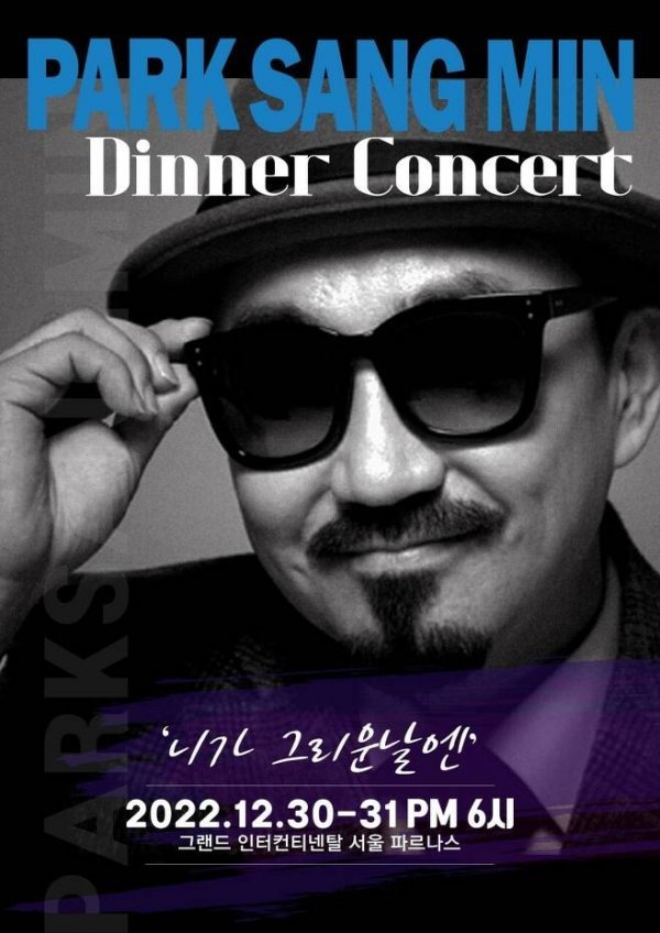 박상민은 12월 30일과 31일 양일간 그랜드 인터컨티넨탈 서울 파르나스에서 디너 콘서트 ‘니가 그리운 날엔’을 열고 팬들과 만난다. 특급 호텔에서 만나는 최고급 만찬과 명품 공연이 팬들에게 잊지 못할 추억을 선사할 전망이다.