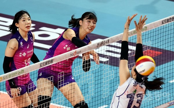 13일 인천 삼산월드체육관에서 ‘2022-2023 도드람 V리그’ 인천 흥국생명과 김천 한국도로공사의 여자부 경기가 열렸다. 흥국생명 이주아가 한국도로공사 블로커를 피해 공격을 펼치고 있다.