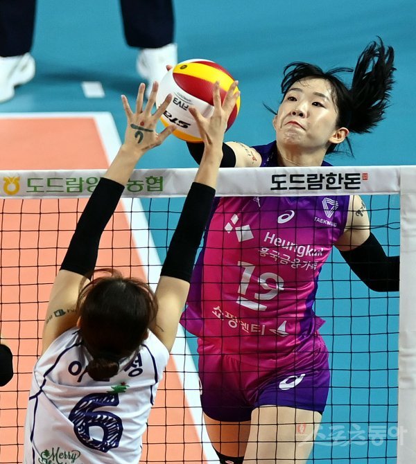 13일 인천 삼산월드체육관에서 ‘2022-2023 도드람 V리그’ 인천 흥국생명과 김천 한국도로공사의 여자부 경기가 열렸다. 흥국생명 김미연이 한국도로공사 블로커를 피해 공격을 펼치고 있다.