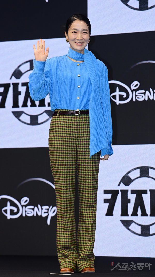 배우 김주령이 14일 서울 종로구 JW메리어트동대문스퀘어서울에서 열린 디즈니플러스 ‘카지노’ 제작발표회에서 포즈를 취하고 있다.