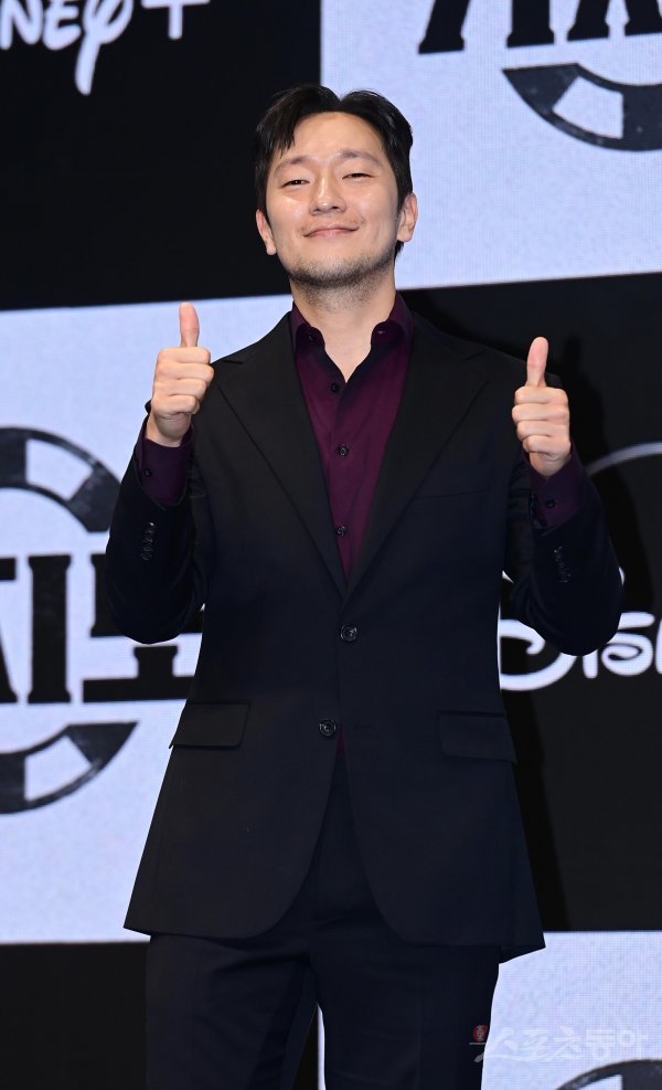 배우 손석구가 14일 서울 종로구 JW메리어트동대문스퀘어서울에서 열린 디즈니플러스 ‘카지노’ 제작발표회에서 포즈를 취하고 있다.