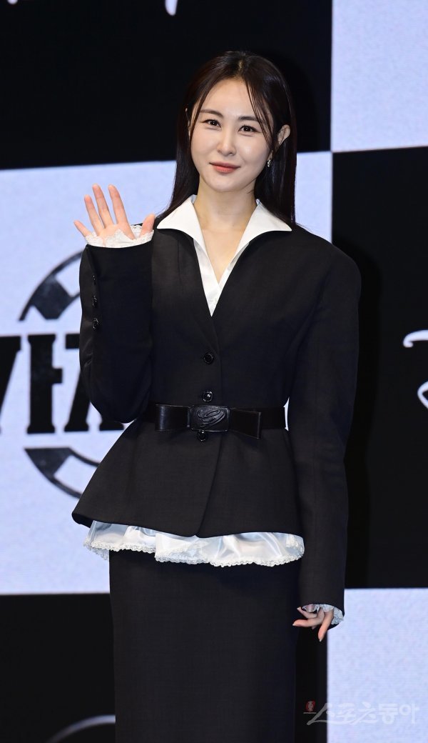 배우 손은서가 14일 서울 종로구 JW메리어트동대문스퀘어서울에서 열린 디즈니플러스 ‘카지노’ 제작발표회에서 포즈를 취하고 있다.